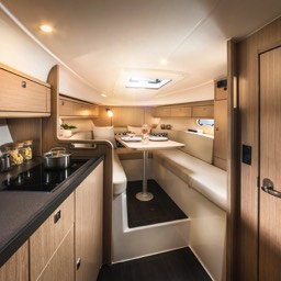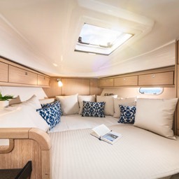 Schon am Design der BAVARIA S29 erkennt man: das ist eine Yacht mit viel Power und sportlichen Ambitionen. Ideal für Fahrer, die auf dem Wasser gern schneller unterwegs sind. Dabei hilft ihnen u. a. ein ergonomischer Steuerstand mit übersichtlichem Layout. Nur eines von vielen Highlights. Kurz: Einem relaxten Tag auf See mit Familie und Freunden steht mit der BAVARIA S29 nichts im Wege. Sportlicher Fahrspaß ist garantiert.